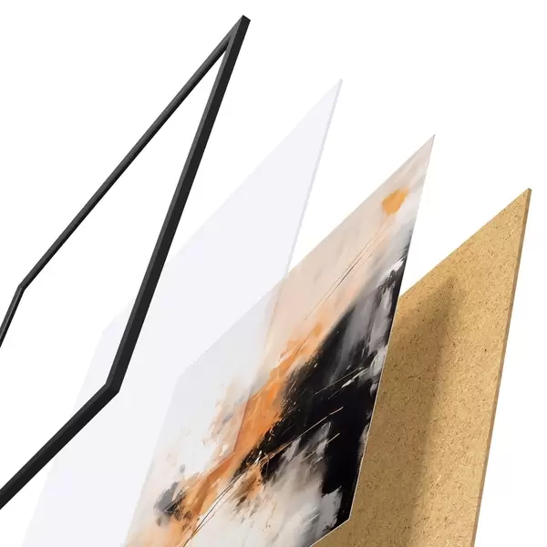 Plakát se skládá z rámu, plexiskla, tištěného obrazu a dřevotřískového podkladu. Díky úchytům na zadní straně lze plakát ihned zavěsit na zeď.