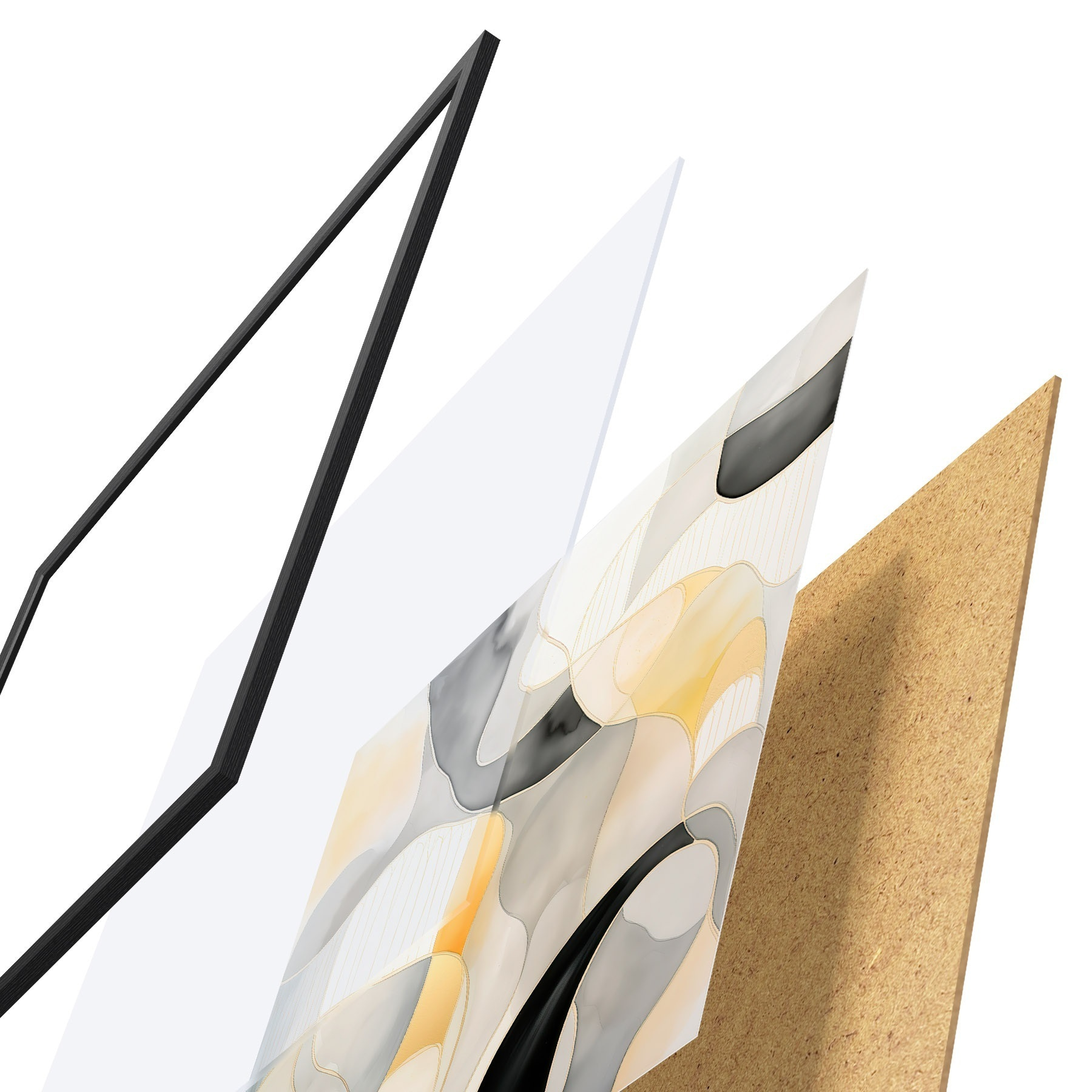 Plakát se skládá z rámu, plexiskla, tištěného obrazu a dřevotřískového podkladu. Díky úchytům na zadní straně lze plakát ihned zavěsit na zeď.