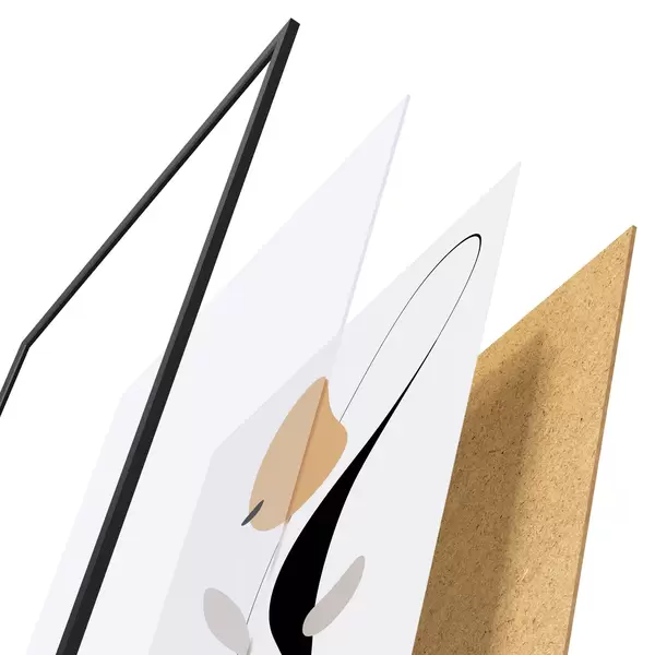 Plakát se skládá z rámu, plexiskla, tištěného obrazu a dřevotřískového podkladu. Díky úchytům na zadní straně lze plakát ihned zavěsit na zeď.