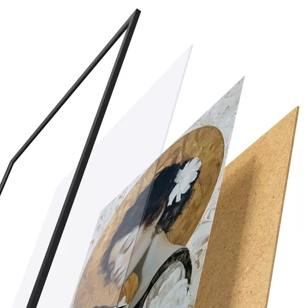 Plakát se skládá z rámu, plexiskla, tištěného obrazu a dřevotřískového podkladu. Díky úchytům na zadní straně lze plakát ihned zavěsit na zeď.