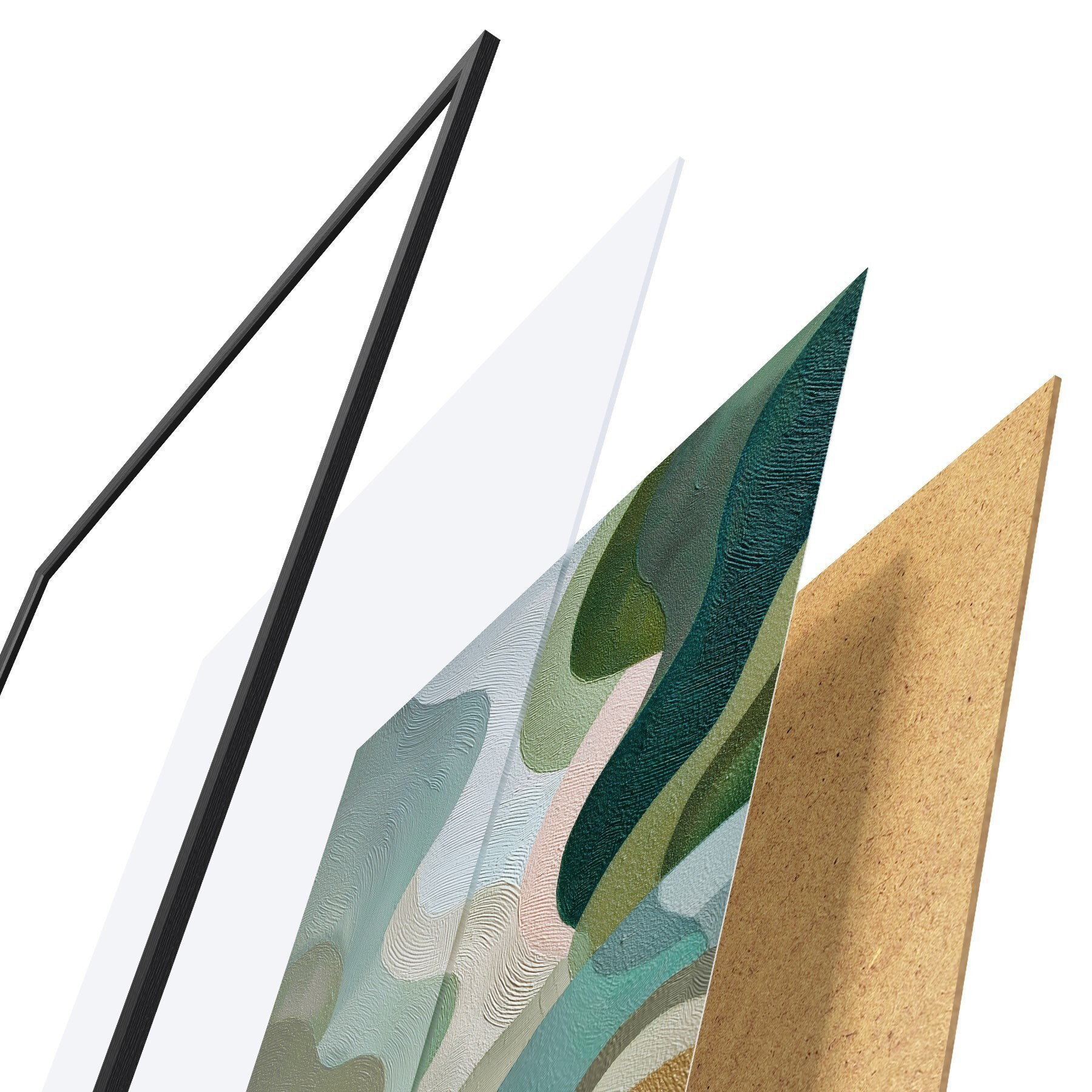 Plakát se skládá z rámu, plexiskla, tištěného obrazu a dřevotřískového podkladu. Díky úchytům na zadní straně lze plakát ihned zavěsit na zeď.