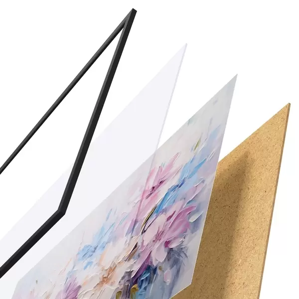 Plakát se skládá z rámu, plexiskla, tištěného obrazu a dřevotřískového podkladu. Díky úchytům na zadní straně lze plakát ihned zavěsit na zeď.