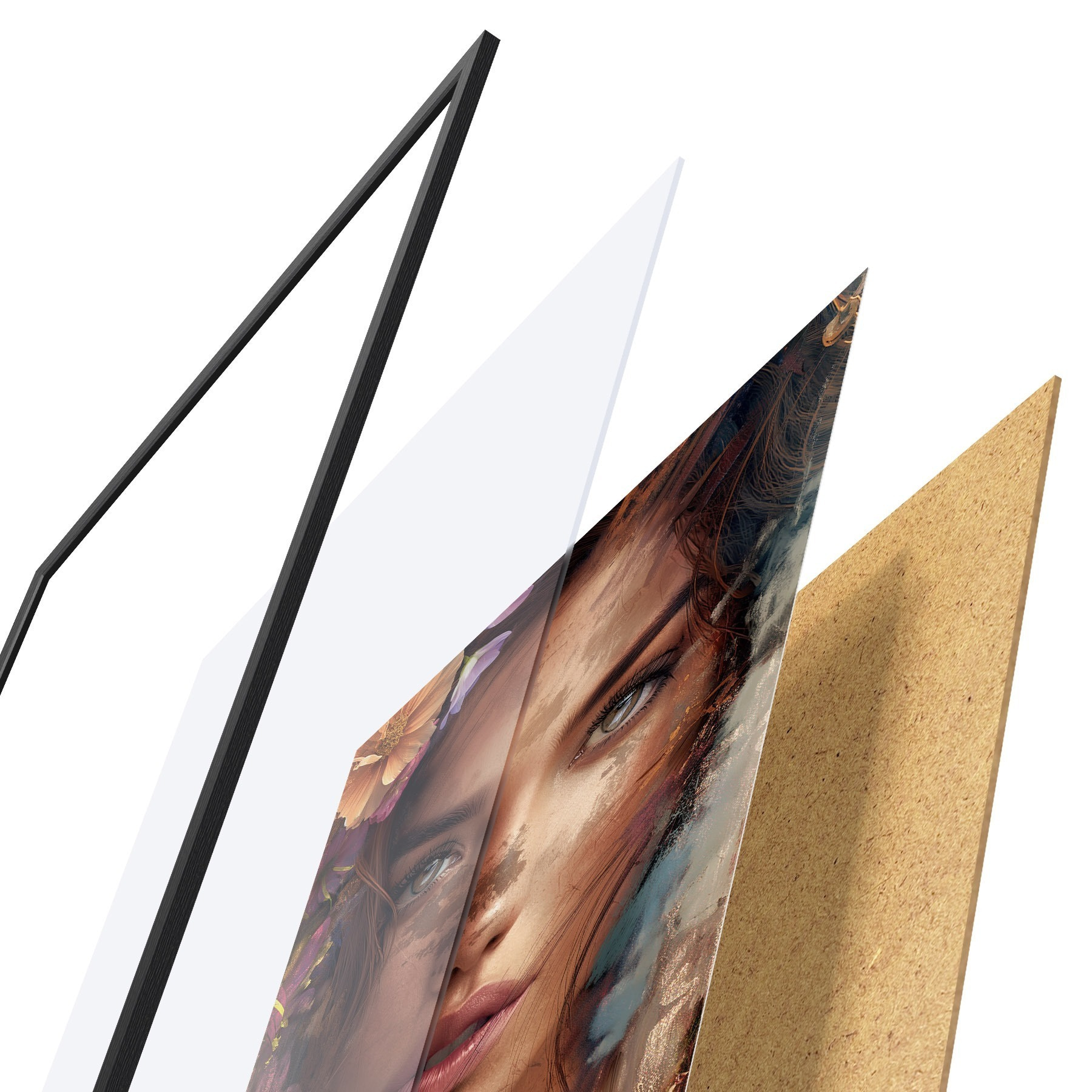 Plakát se skládá z rámu, plexiskla, tištěného obrazu a dřevotřískového podkladu. Díky úchytům na zadní straně lze plakát ihned zavěsit na zeď.
