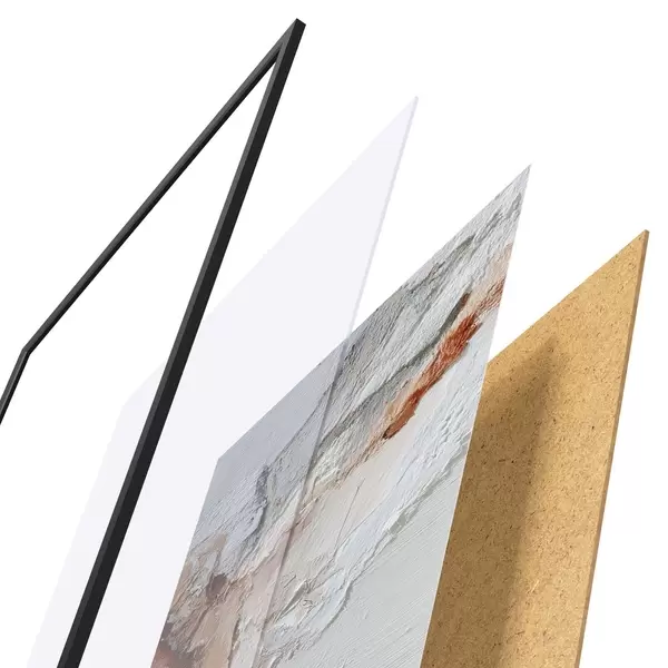 Plakát se skládá z rámu, plexiskla, tištěného obrazu a dřevotřískového podkladu. Díky úchytům na zadní straně lze plakát ihned zavěsit na zeď.