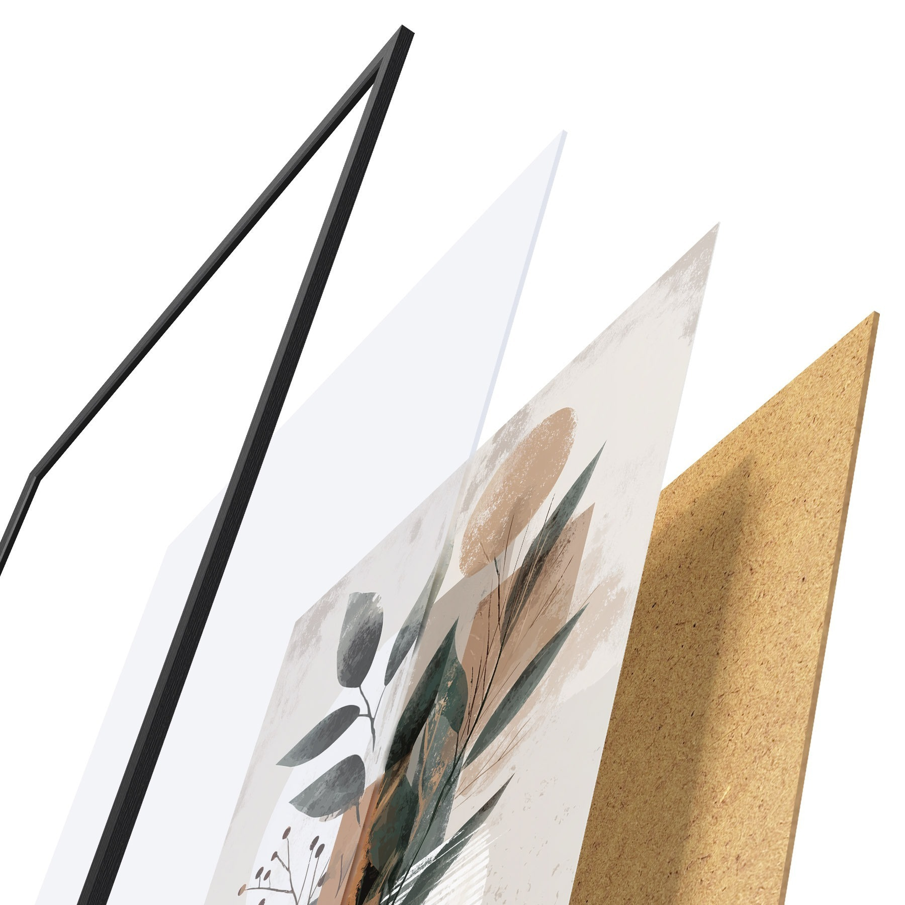 Plakát se skládá z rámu, plexiskla, tištěného obrazu a dřevotřískového podkladu. Díky úchytům na zadní straně lze plakát ihned zavěsit na zeď.