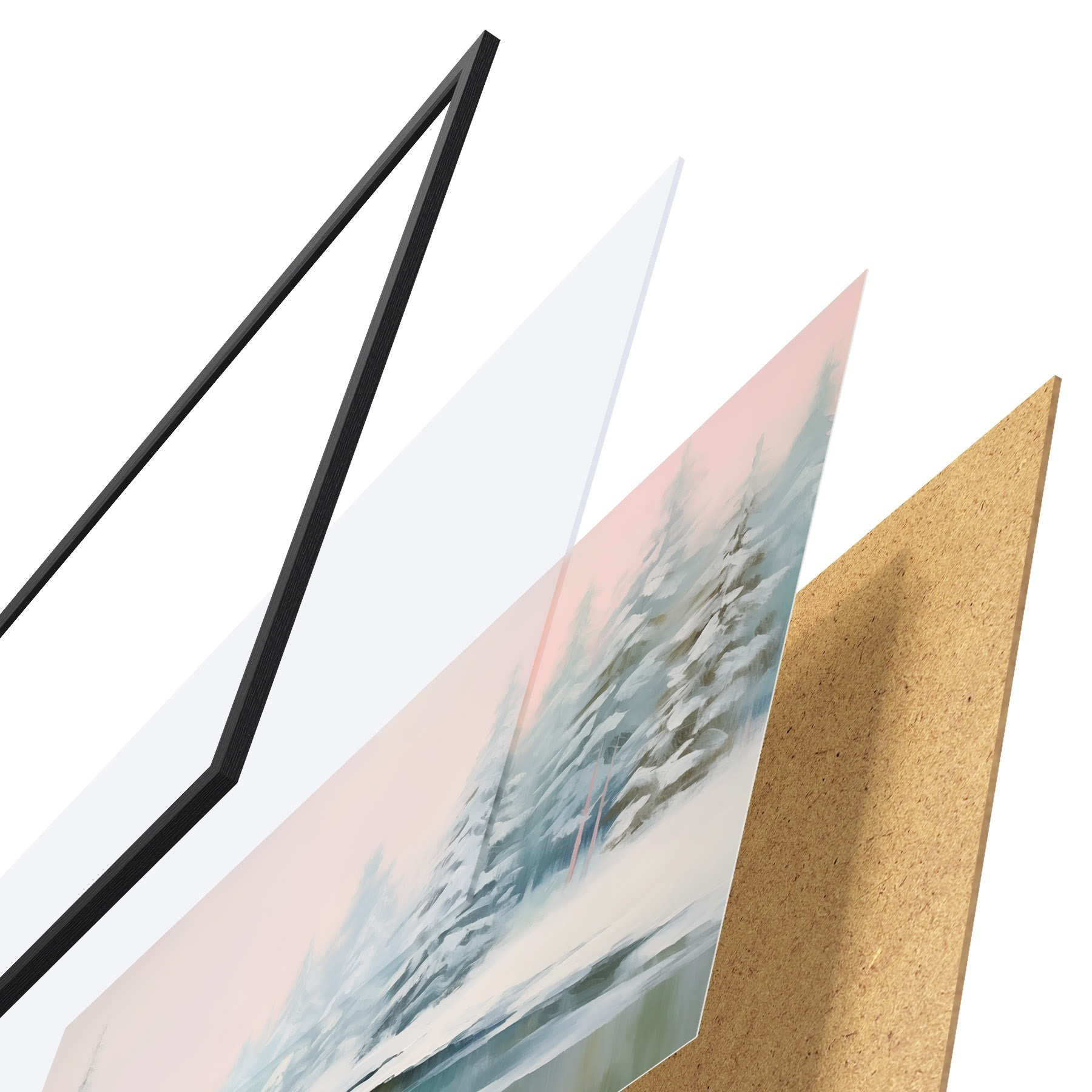 Plakát se skládá z rámu, plexiskla, tištěného obrazu a dřevotřískového podkladu. Díky úchytům na zadní straně lze plakát ihned zavěsit na zeď.