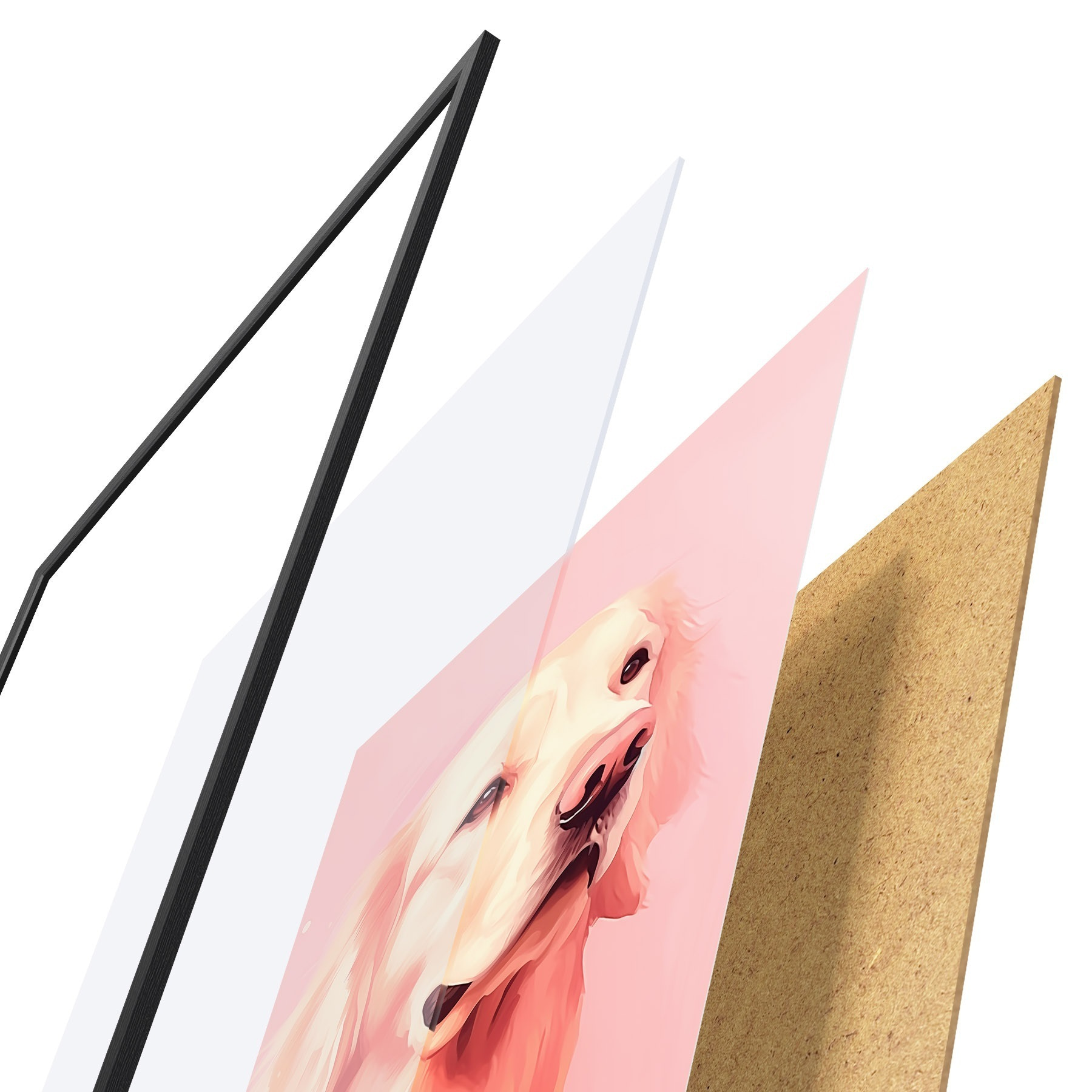 Plakát se skládá z rámu, plexiskla, tištěného obrazu a dřevotřískového podkladu. Díky úchytům na zadní straně lze plakát ihned zavěsit na zeď.