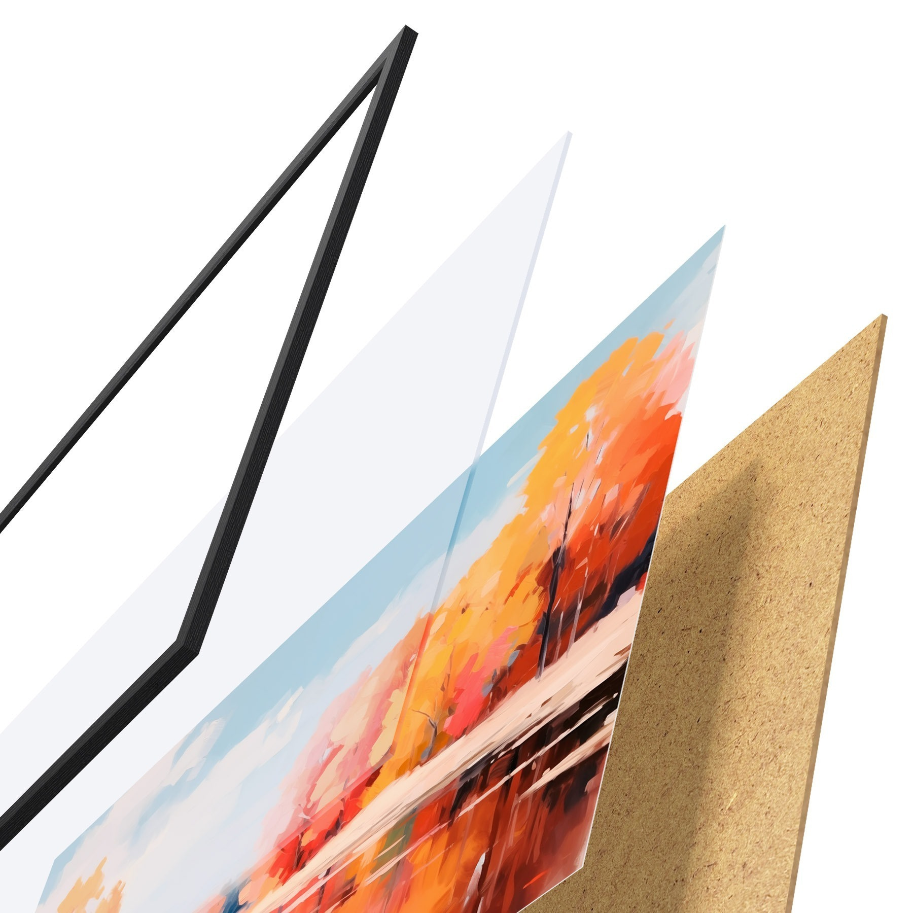 Plakát se skládá z rámu, plexiskla, tištěného obrazu a dřevotřískového podkladu. Díky úchytům na zadní straně lze plakát ihned zavěsit na zeď.