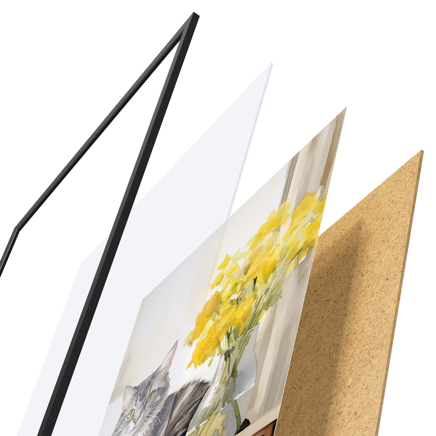 Plakát se skládá z rámu, plexiskla, tištěného obrazu a dřevotřískového podkladu. Díky úchytům na zadní straně lze plakát ihned zavěsit na zeď.