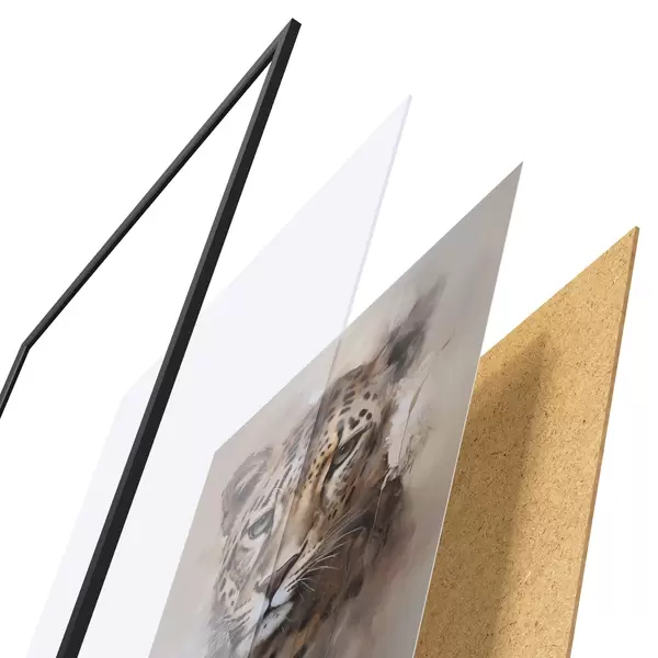 Plakát se skládá z rámu, plexiskla, tištěného obrazu a dřevotřískového podkladu. Díky úchytům na zadní straně lze plakát ihned zavěsit na zeď.