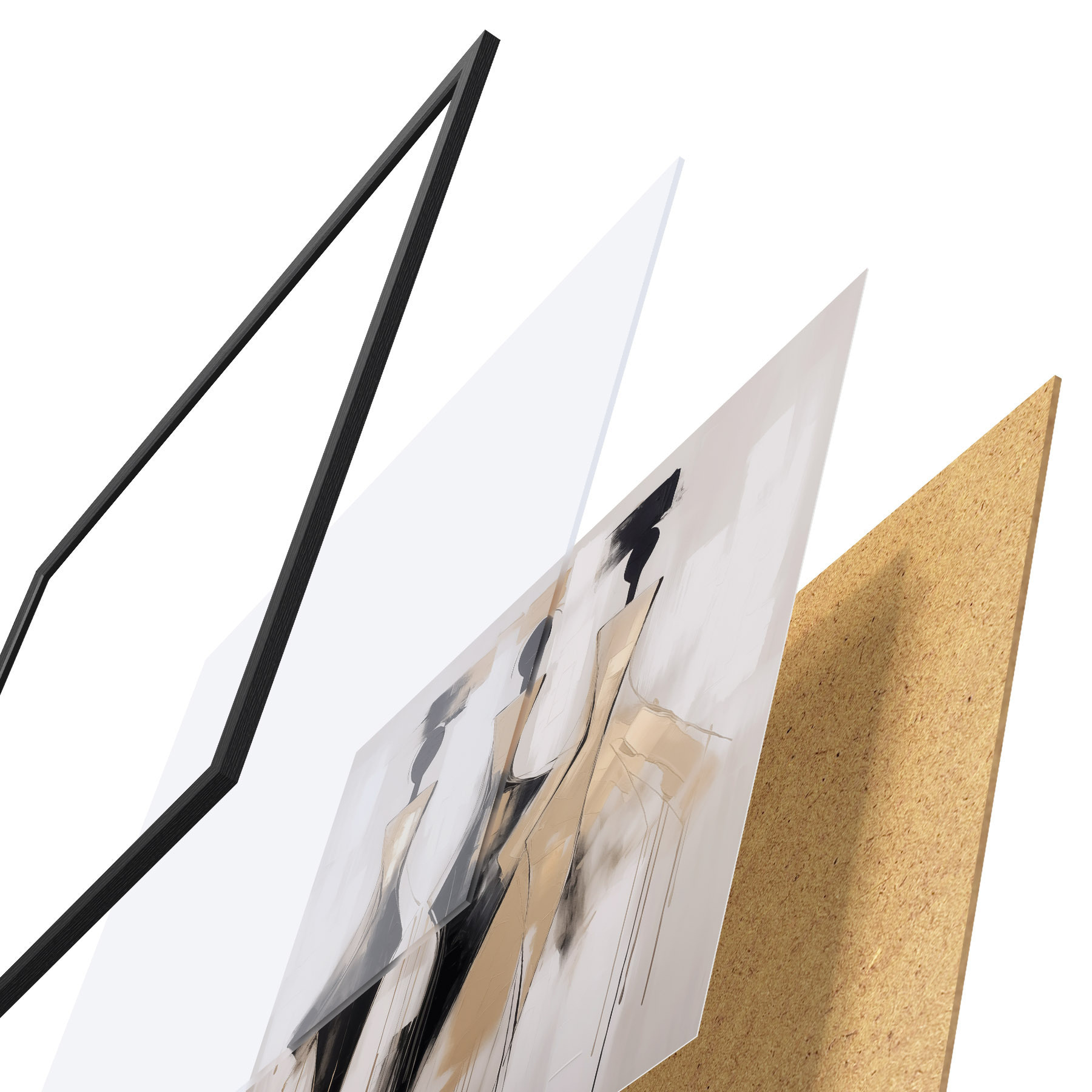 Plakát se skládá z rámu, plexiskla, tištěného obrazu a dřevotřískového podkladu. Díky úchytům na zadní straně lze plakát ihned zavěsit na zeď.