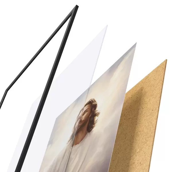Plakát se skládá z rámu, plexiskla, tištěného obrazu a dřevotřískového podkladu. Díky úchytům na zadní straně lze plakát ihned zavěsit na zeď.