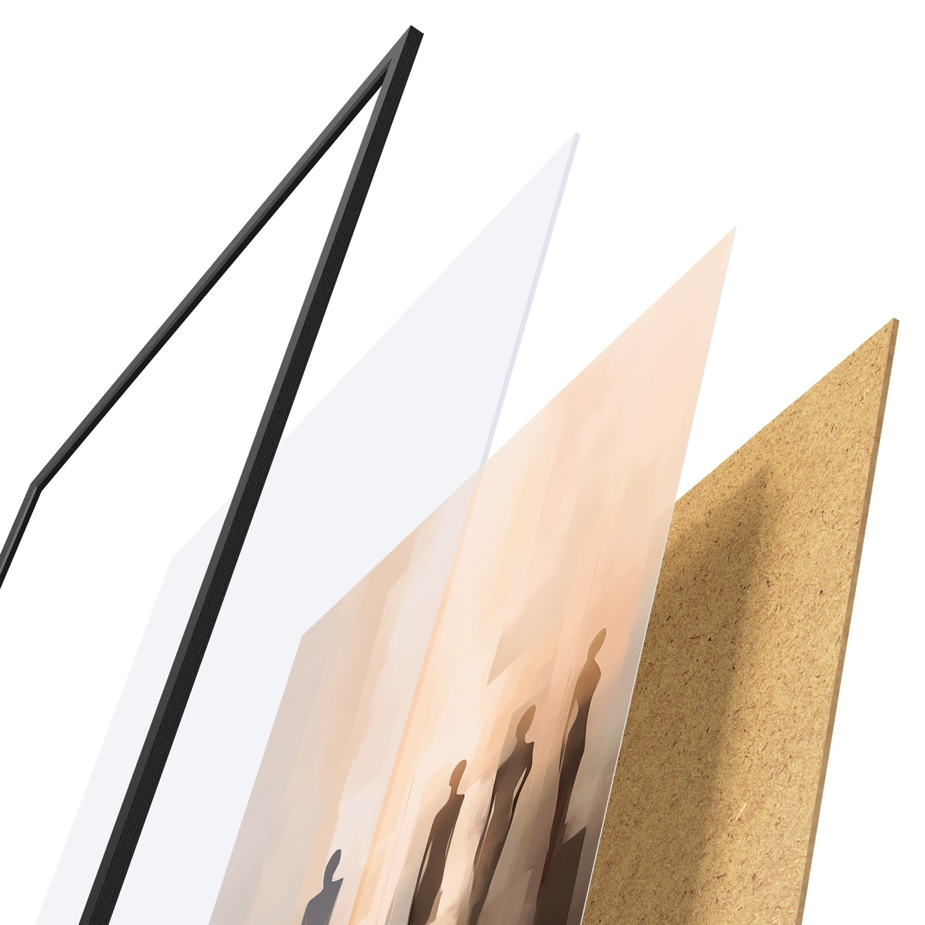 Plakát se skládá z rámu, plexiskla, tištěného obrazu a dřevotřískového podkladu. Díky úchytům na zadní straně lze plakát ihned zavěsit na zeď.