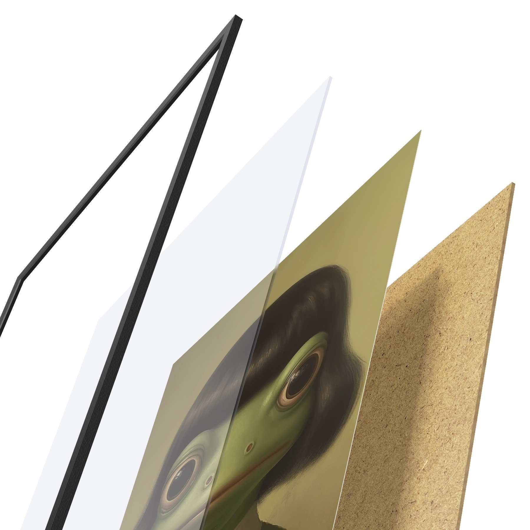 Plakát se skládá z rámu, plexiskla, tištěného obrazu a dřevotřískového podkladu. Díky úchytům na zadní straně lze plakát ihned zavěsit na zeď.