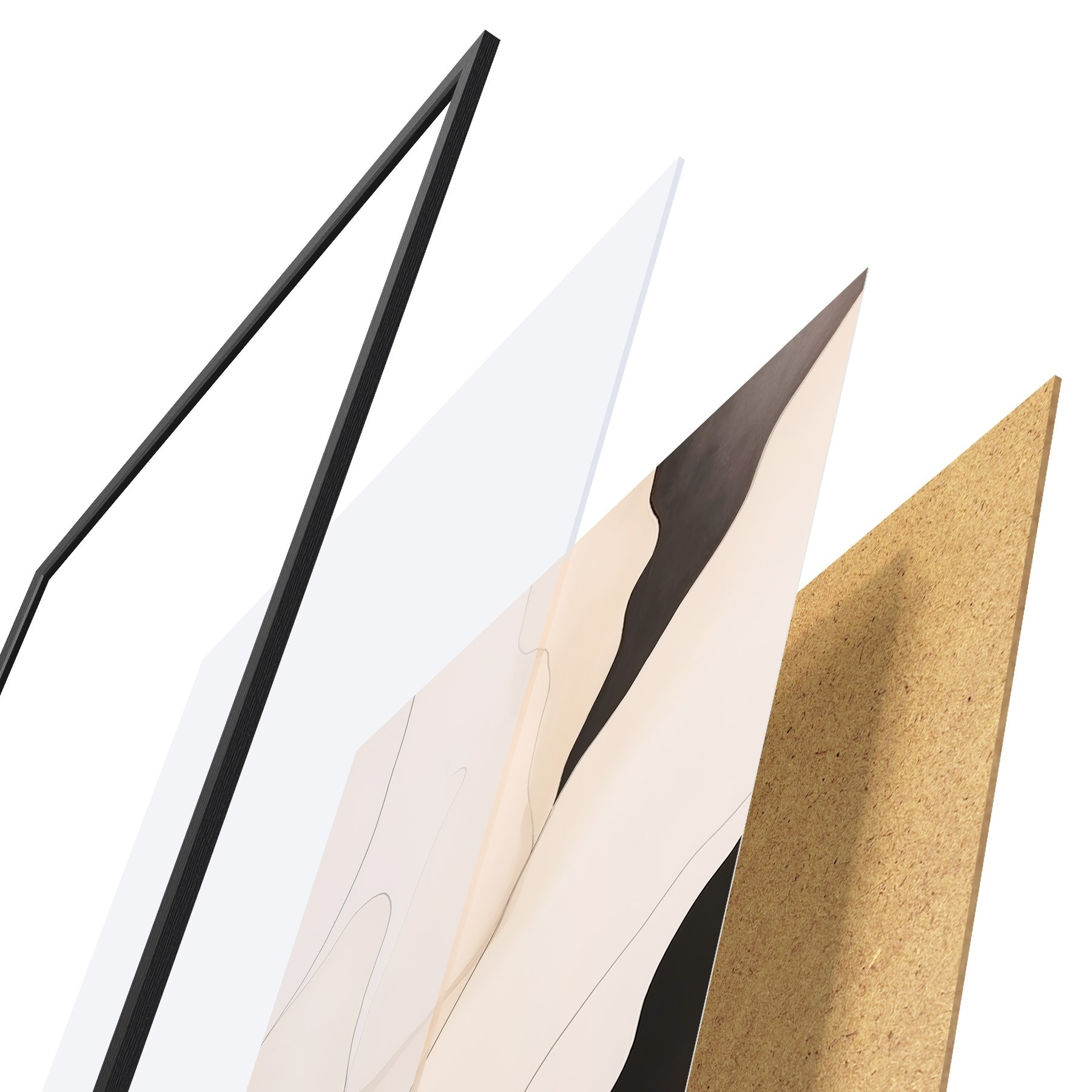 Plakát se skládá z rámu, plexiskla, tištěného obrazu a dřevotřískového podkladu. Díky úchytům na zadní straně lze plakát ihned zavěsit na zeď.