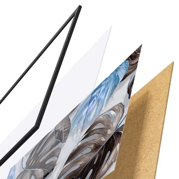 Plakát se skládá z rámu, plexiskla, tištěného obrazu a dřevotřískového podkladu. Díky úchytům na zadní straně lze plakát ihned zavěsit na zeď.