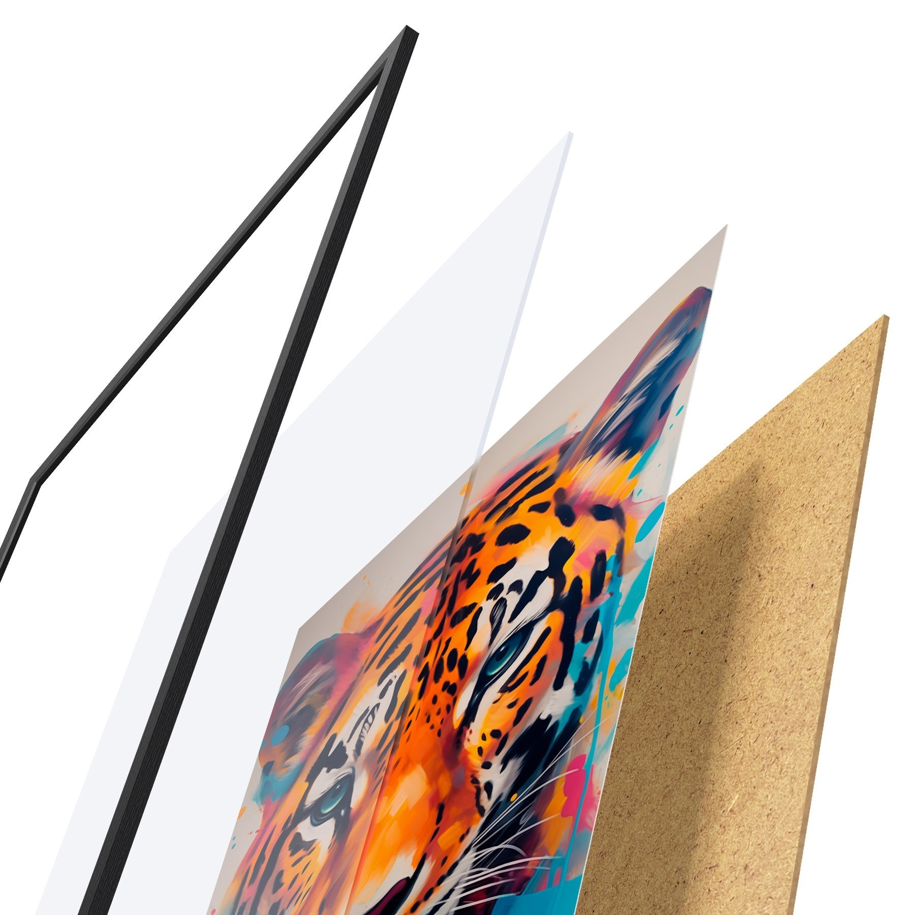 Plakát se skládá z rámu, plexiskla, tištěného obrazu a dřevotřískového podkladu. Díky úchytům na zadní straně lze plakát ihned zavěsit na zeď.