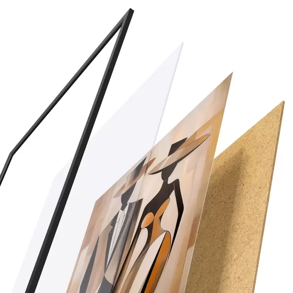 Plakát se skládá z rámu, plexiskla, tištěného obrazu a dřevotřískového podkladu. Díky úchytům na zadní straně lze plakát ihned zavěsit na zeď.
