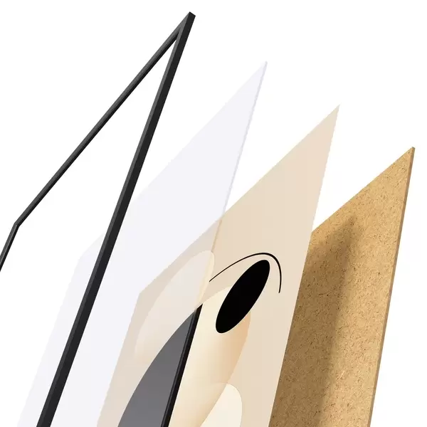 Plakát se skládá z rámu, plexiskla, tištěného obrazu a dřevotřískového podkladu. Díky úchytům na zadní straně lze plakát ihned zavěsit na zeď.