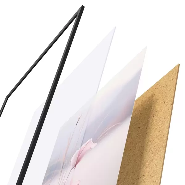 Plakát se skládá z rámu, plexiskla, tištěného obrazu a dřevotřískového podkladu. Díky úchytům na zadní straně lze plakát ihned zavěsit na zeď.