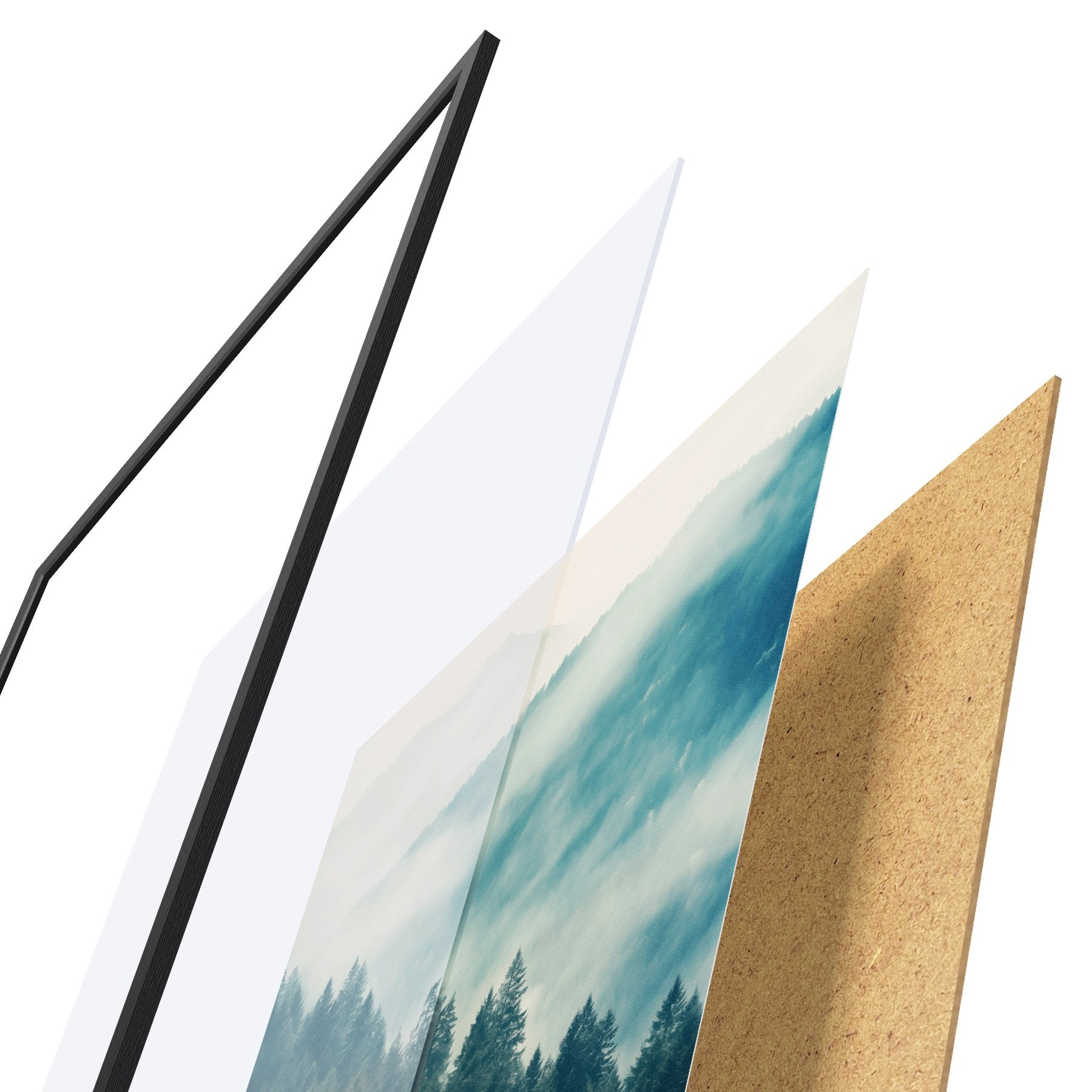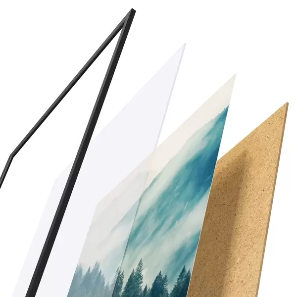 Plakát se skládá z rámu, plexiskla, tištěného obrazu a dřevotřískového podkladu. Díky úchytům na zadní straně lze plakát ihned zavěsit na zeď.