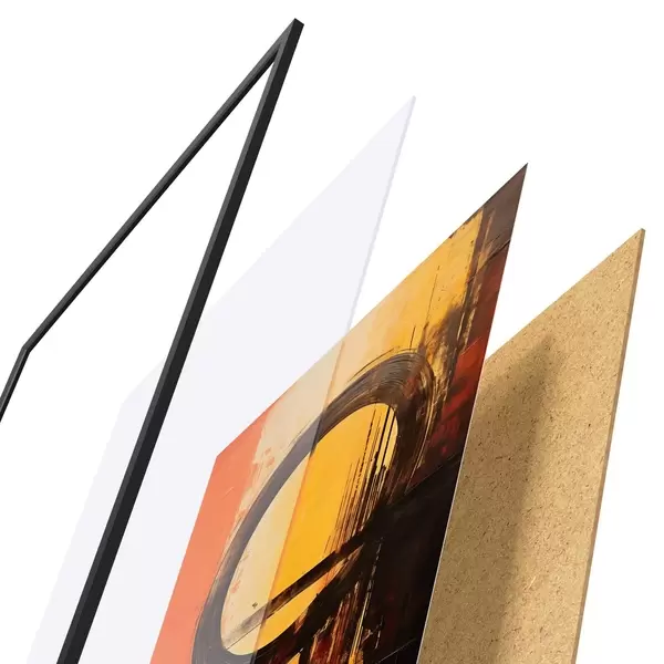 Plakát se skládá z rámu, plexiskla, tištěného obrazu a dřevotřískového podkladu. Díky úchytům na zadní straně lze plakát ihned zavěsit na zeď.