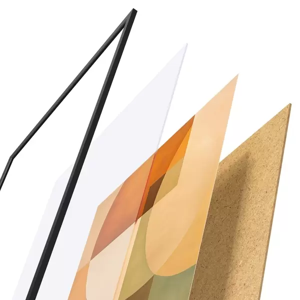 Plakát se skládá z rámu, plexiskla, tištěného obrazu a dřevotřískového podkladu. Díky úchytům na zadní straně lze plakát ihned zavěsit na zeď.
