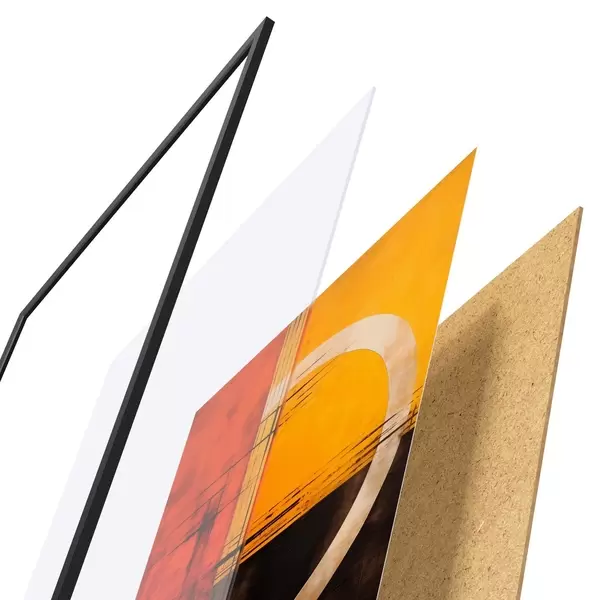 Plakát se skládá z rámu, plexiskla, tištěného obrazu a dřevotřískového podkladu. Díky úchytům na zadní straně lze plakát ihned zavěsit na zeď.
