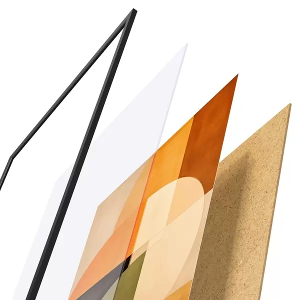 Plakát se skládá z rámu, plexiskla, tištěného obrazu a dřevotřískového podkladu. Díky úchytům na zadní straně lze plakát ihned zavěsit na zeď.