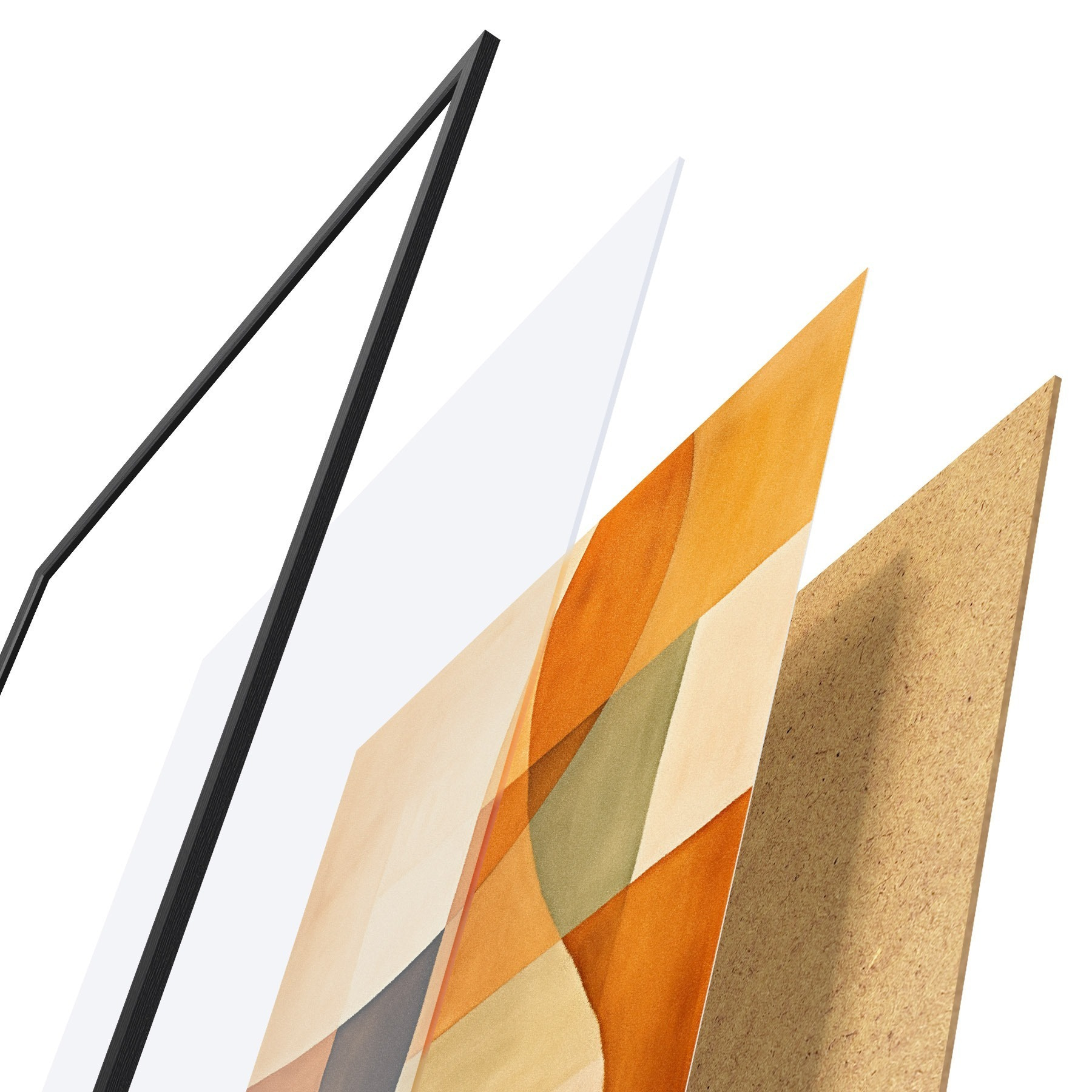 Plakát se skládá z rámu, plexiskla, tištěného obrazu a dřevotřískového podkladu. Díky úchytům na zadní straně lze plakát ihned zavěsit na zeď.