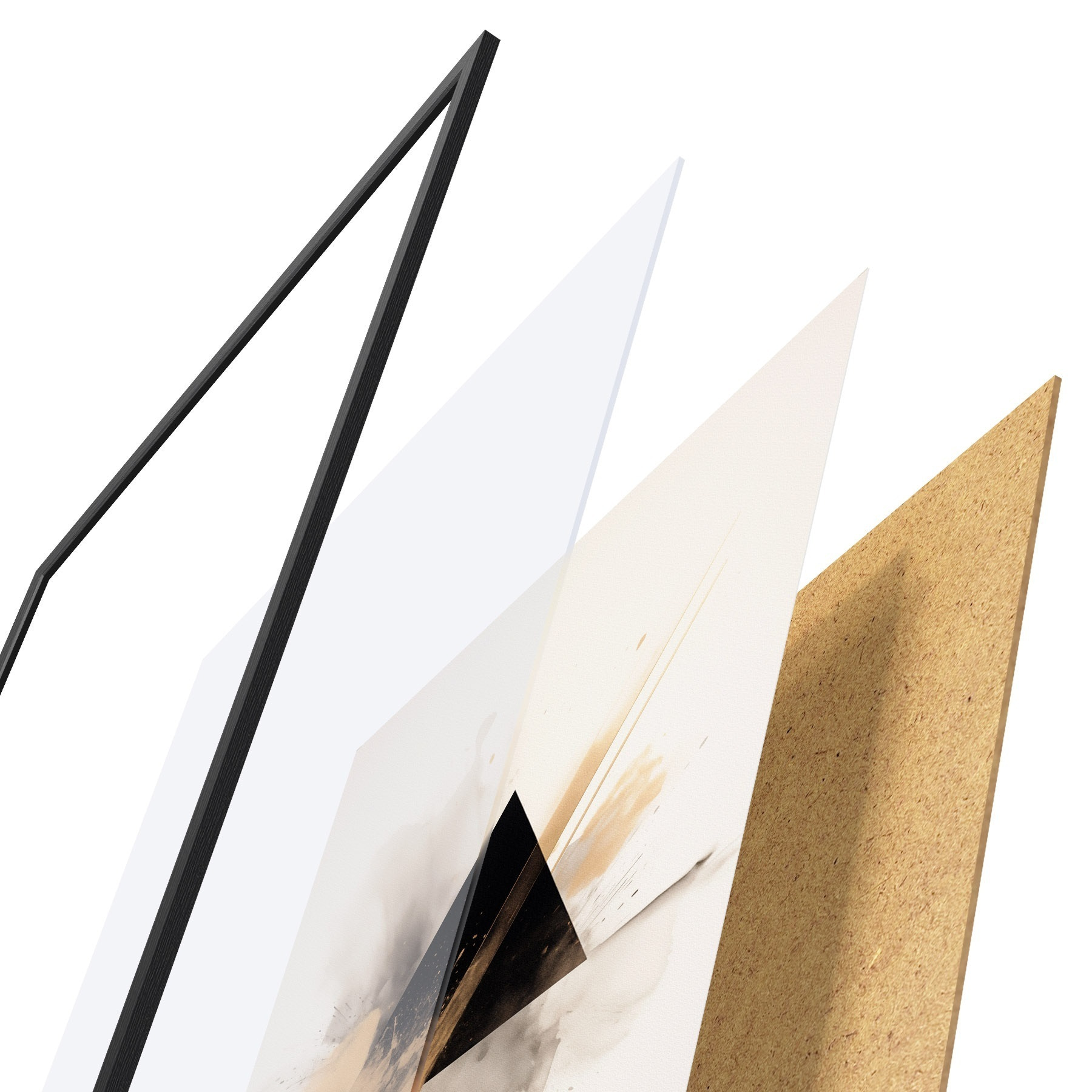 Plakát se skládá z rámu, plexiskla, tištěného obrazu a dřevotřískového podkladu. Díky úchytům na zadní straně lze plakát ihned zavěsit na zeď.