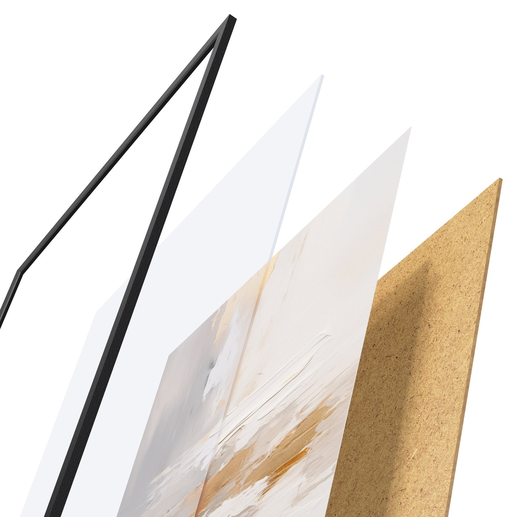 Plakát se skládá z rámu, plexiskla, tištěného obrazu a dřevotřískového podkladu. Díky úchytům na zadní straně lze plakát ihned zavěsit na zeď.