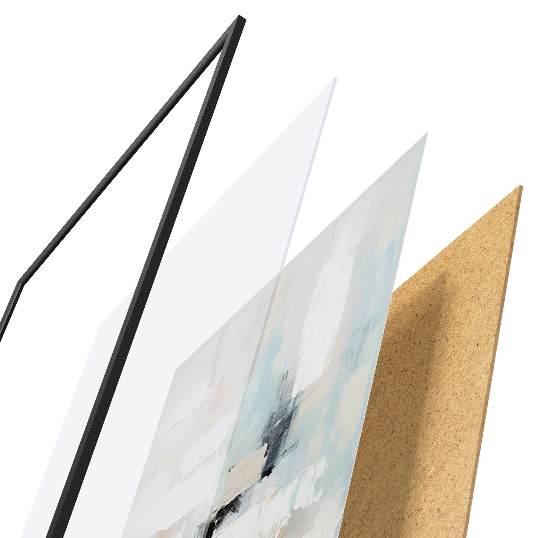 Plakát se skládá z rámu, plexiskla, tištěného obrazu a dřevotřískového podkladu. Díky úchytům na zadní straně lze plakát ihned zavěsit na zeď.