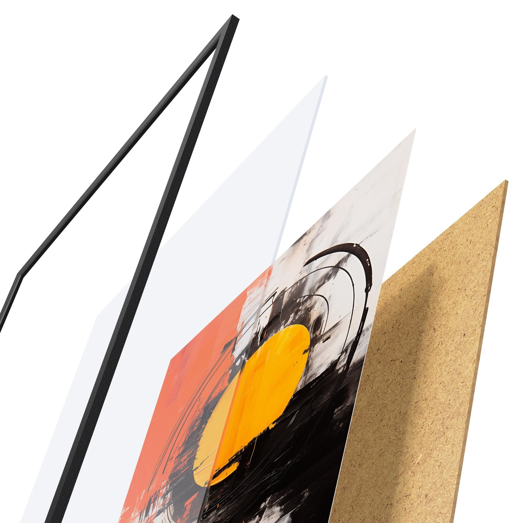 Plakát se skládá z rámu, plexiskla, tištěného obrazu a dřevotřískového podkladu. Díky úchytům na zadní straně lze plakát ihned zavěsit na zeď.