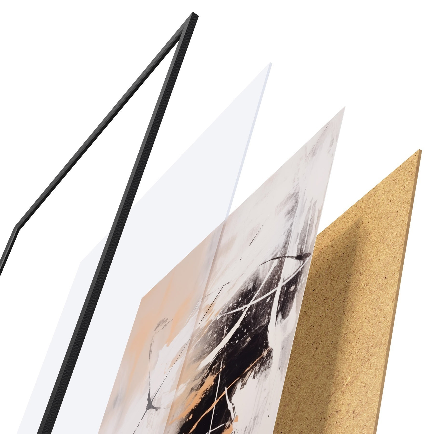 Plakát se skládá z rámu, plexiskla, tištěného obrazu a dřevotřískového podkladu. Díky úchytům na zadní straně lze plakát ihned zavěsit na zeď.