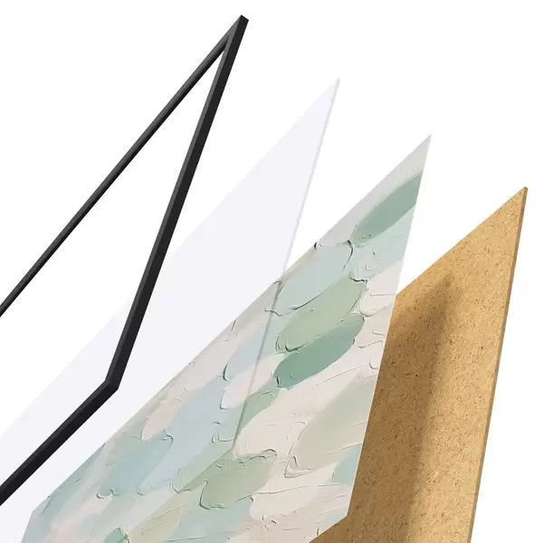 Plakát se skládá z rámu, plexiskla, tištěného obrazu a dřevotřískového podkladu. Díky úchytům na zadní straně lze plakát ihned zavěsit na zeď.