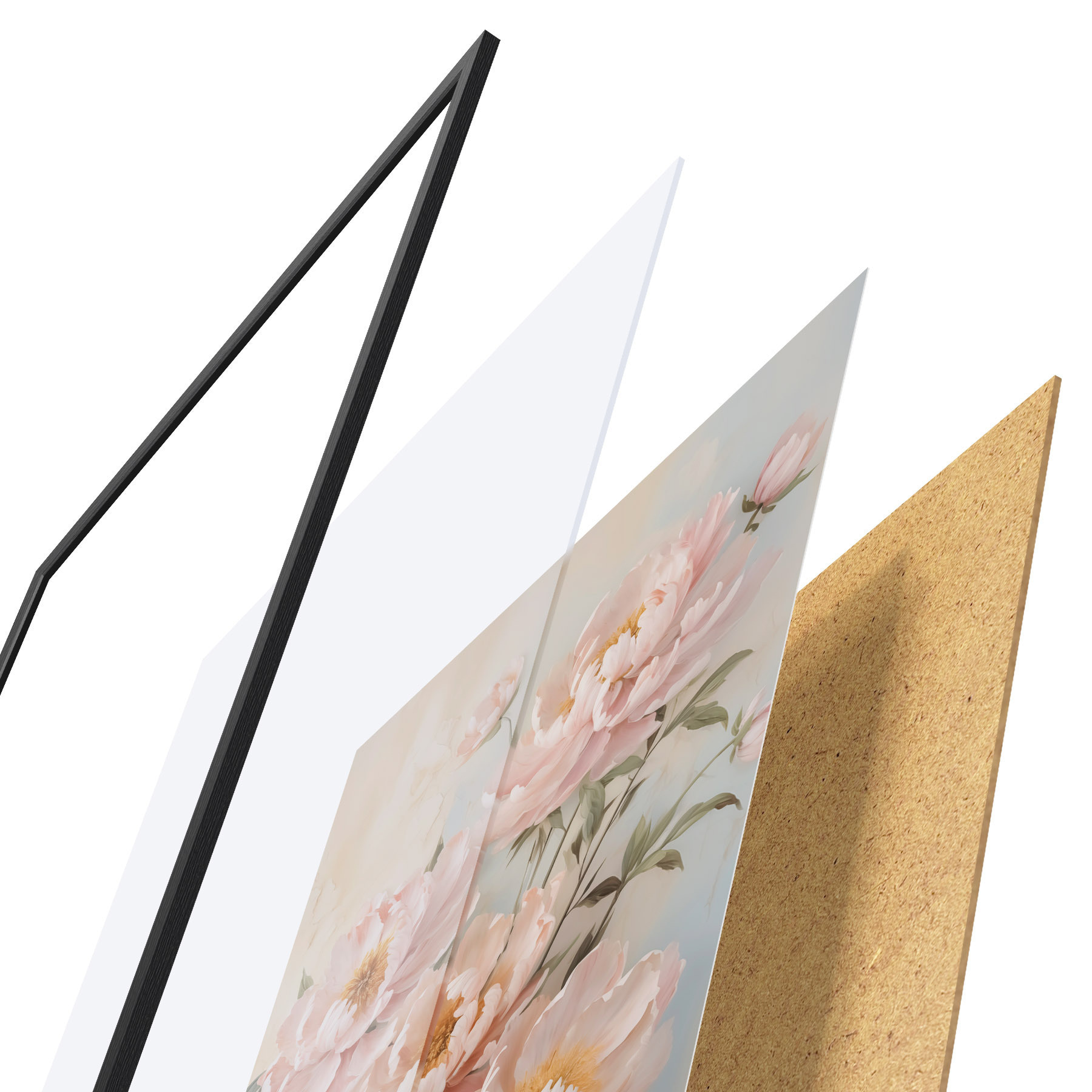Plakát se skládá z rámu, plexiskla, tištěného obrazu a dřevotřískového podkladu. Díky úchytům na zadní straně lze plakát ihned zavěsit na zeď.