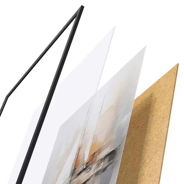 Plakát se skládá z rámu, plexiskla, tištěného obrazu a dřevotřískového podkladu. Díky úchytům na zadní straně lze plakát ihned zavěsit na zeď.