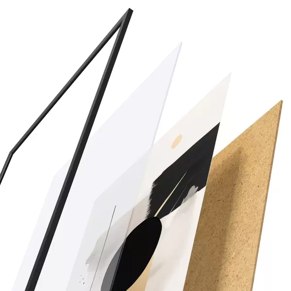 Plakát se skládá z rámu, plexiskla, tištěného obrazu a dřevotřískového podkladu. Díky úchytům na zadní straně lze plakát ihned zavěsit na zeď.