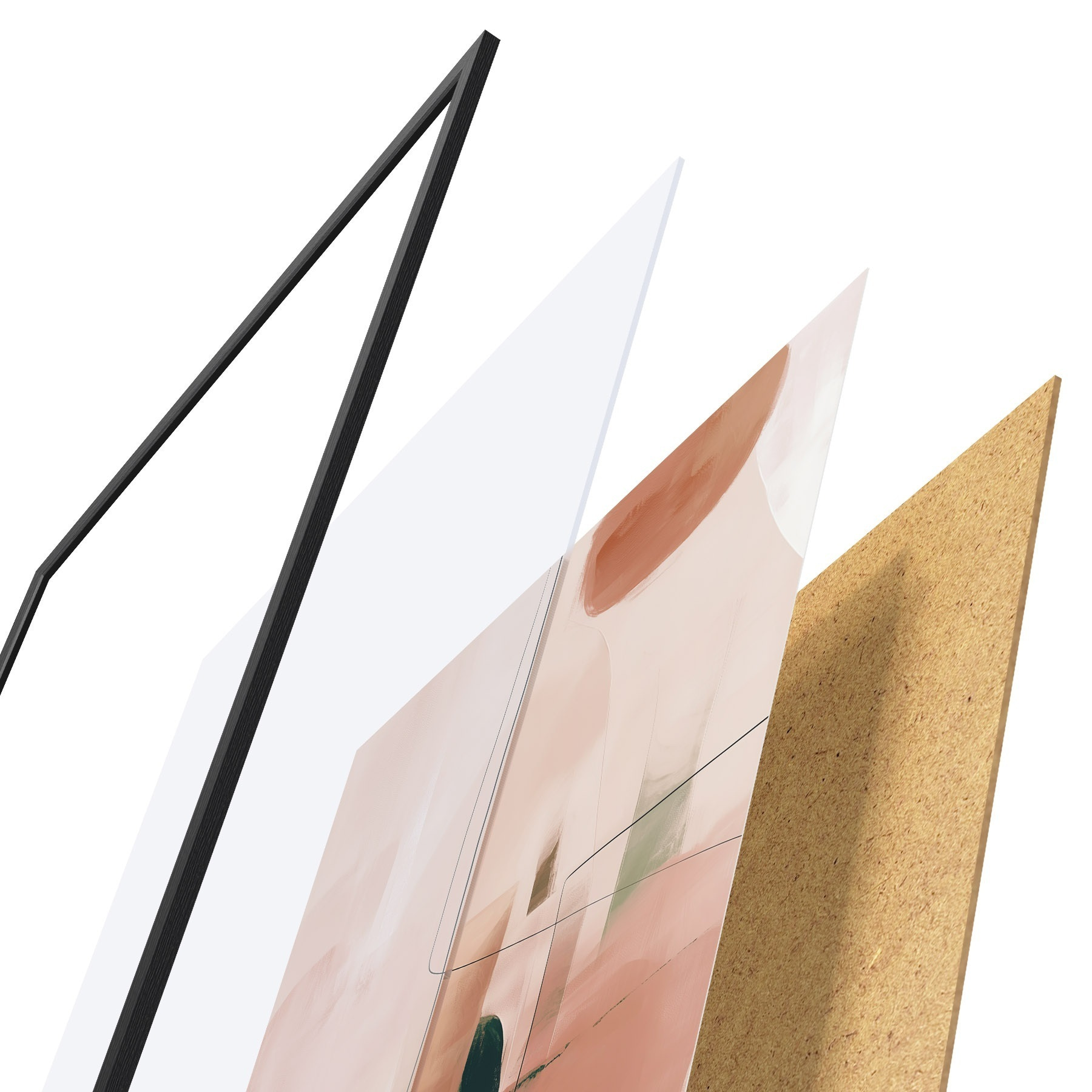 Plakát se skládá z rámu, plexiskla, tištěného obrazu a dřevotřískového podkladu. Díky úchytům na zadní straně lze plakát ihned zavěsit na zeď.
