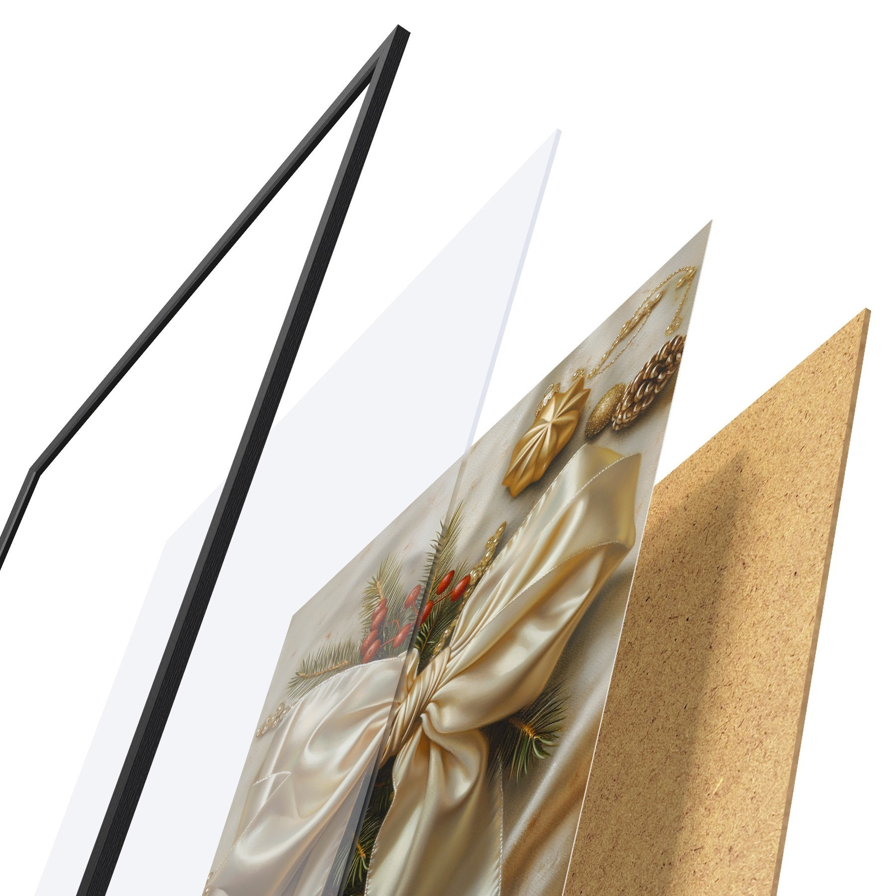 Plakát se skládá z rámu, plexiskla, tištěného obrazu a dřevotřískového podkladu. Díky úchytům na zadní straně lze plakát ihned zavěsit na zeď.