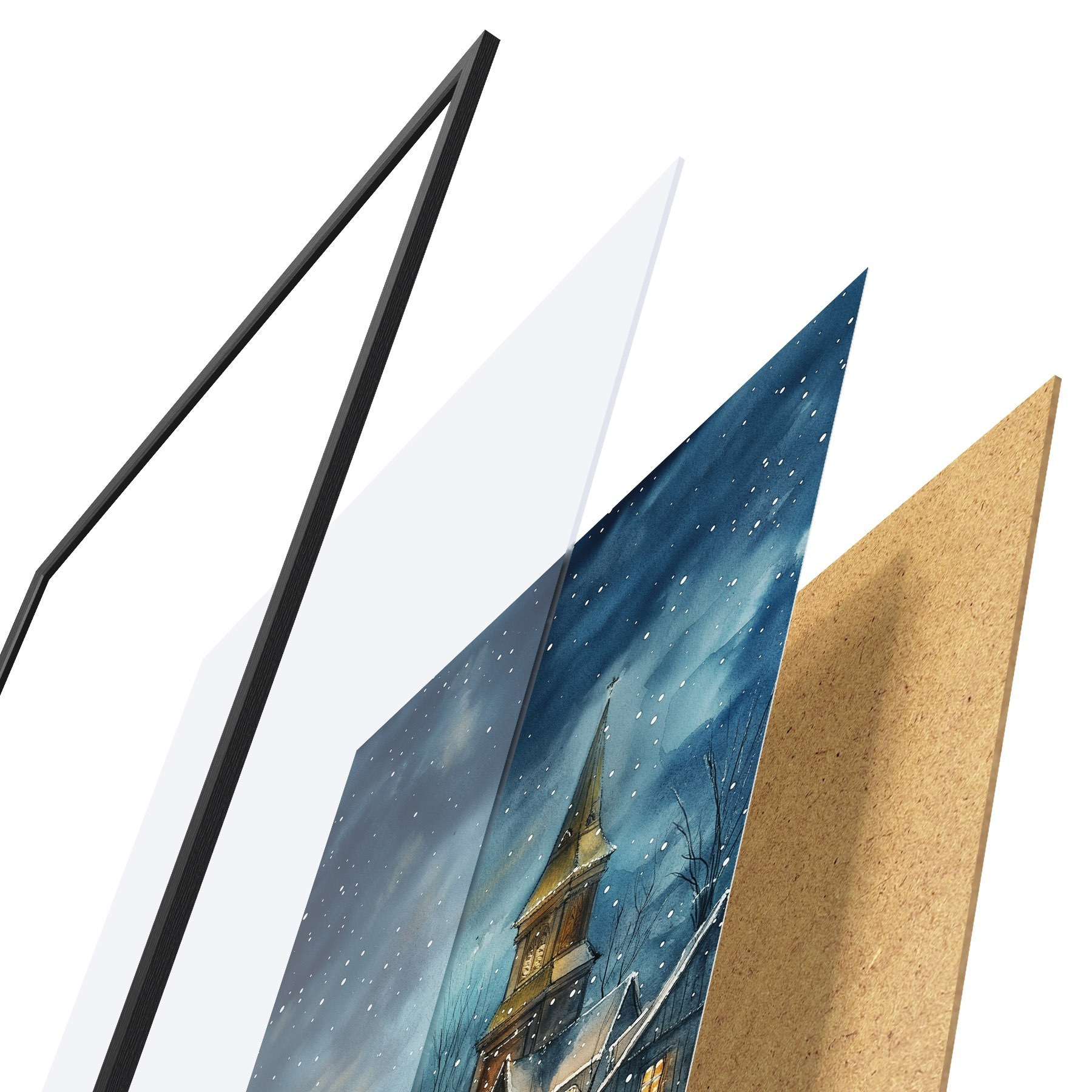 Plakát se skládá z rámu, plexiskla, tištěného obrazu a dřevotřískového podkladu. Díky úchytům na zadní straně lze plakát ihned zavěsit na zeď.