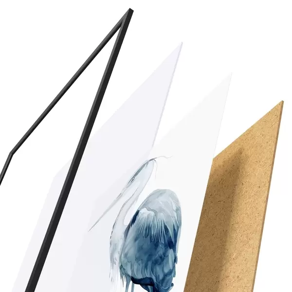 Plakát se skládá z rámu, plexiskla, tištěného obrazu a dřevotřískového podkladu. Díky úchytům na zadní straně lze plakát ihned zavěsit na zeď.