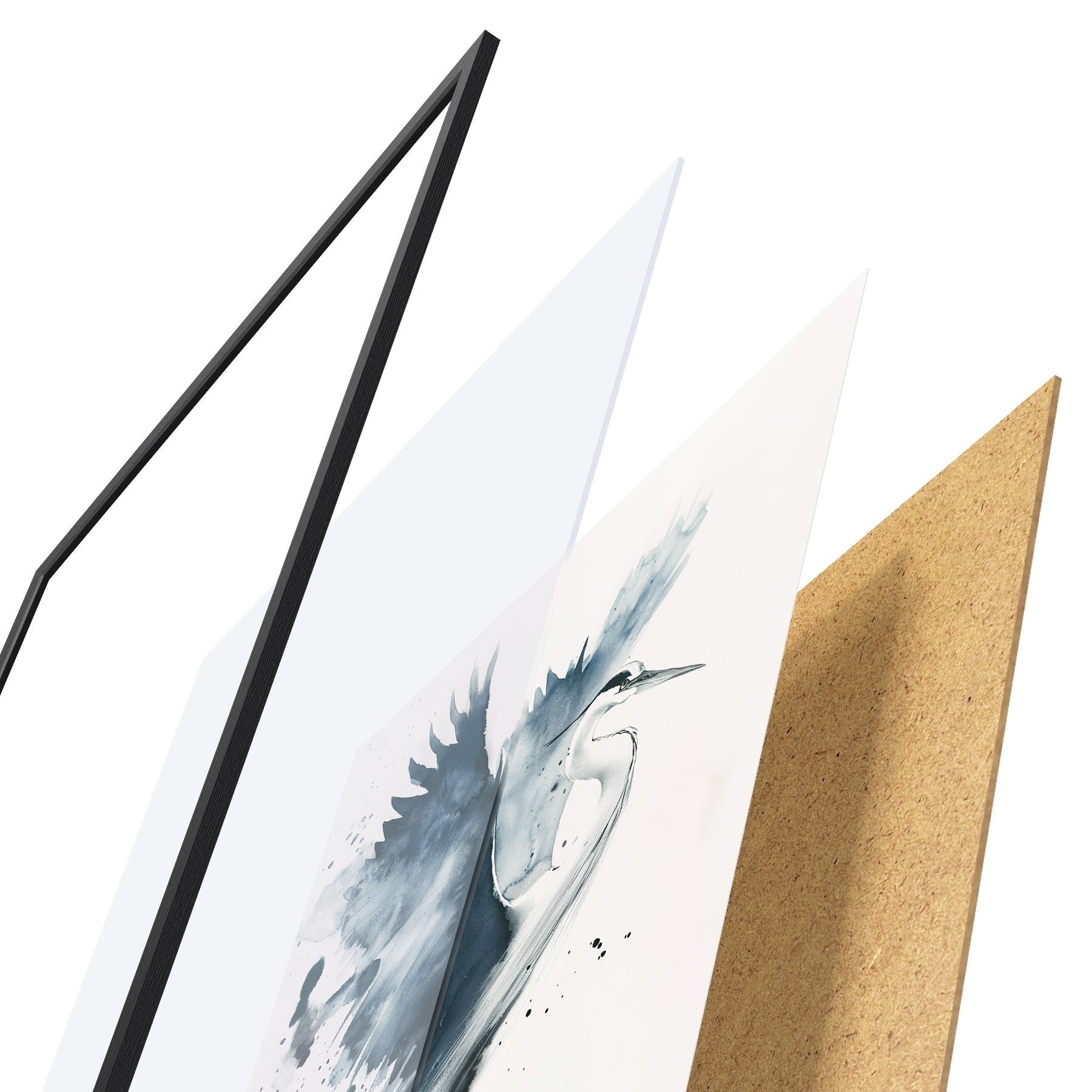 Plakát se skládá z rámu, plexiskla, tištěného obrazu a dřevotřískového podkladu. Díky úchytům na zadní straně lze plakát ihned zavěsit na zeď.