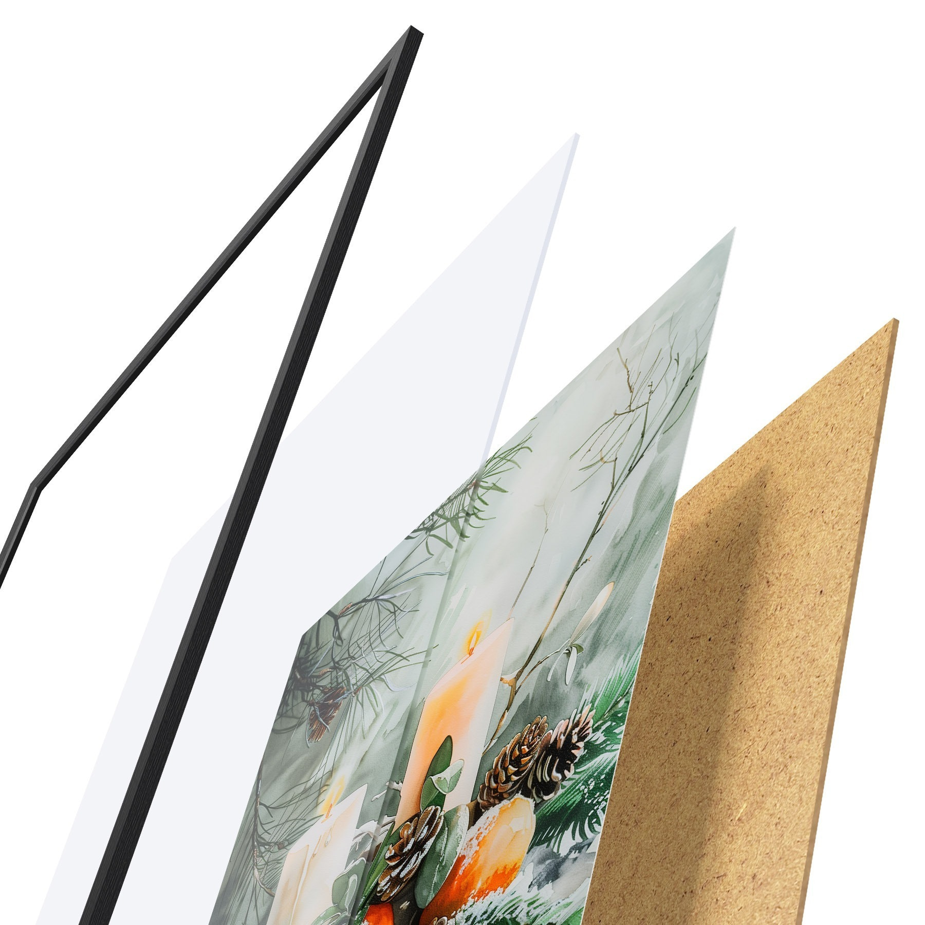 Plakát se skládá z rámu, plexiskla, tištěného obrazu a dřevotřískového podkladu. Díky úchytům na zadní straně lze plakát ihned zavěsit na zeď.