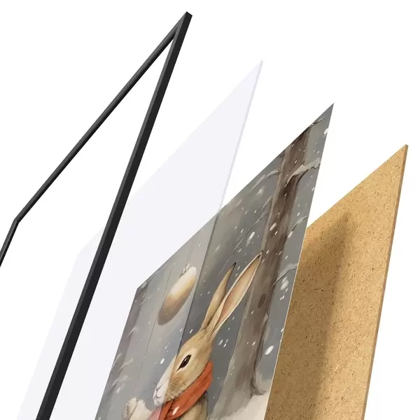 Plakát se skládá z rámu, plexiskla, tištěného obrazu a dřevotřískového podkladu. Díky úchytům na zadní straně lze plakát ihned zavěsit na zeď.