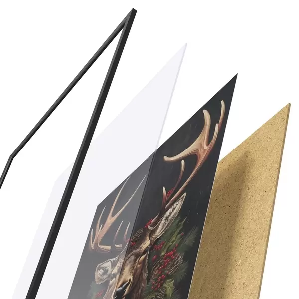 Plakát se skládá z rámu, plexiskla, tištěného obrazu a dřevotřískového podkladu. Díky úchytům na zadní straně lze plakát ihned zavěsit na zeď.