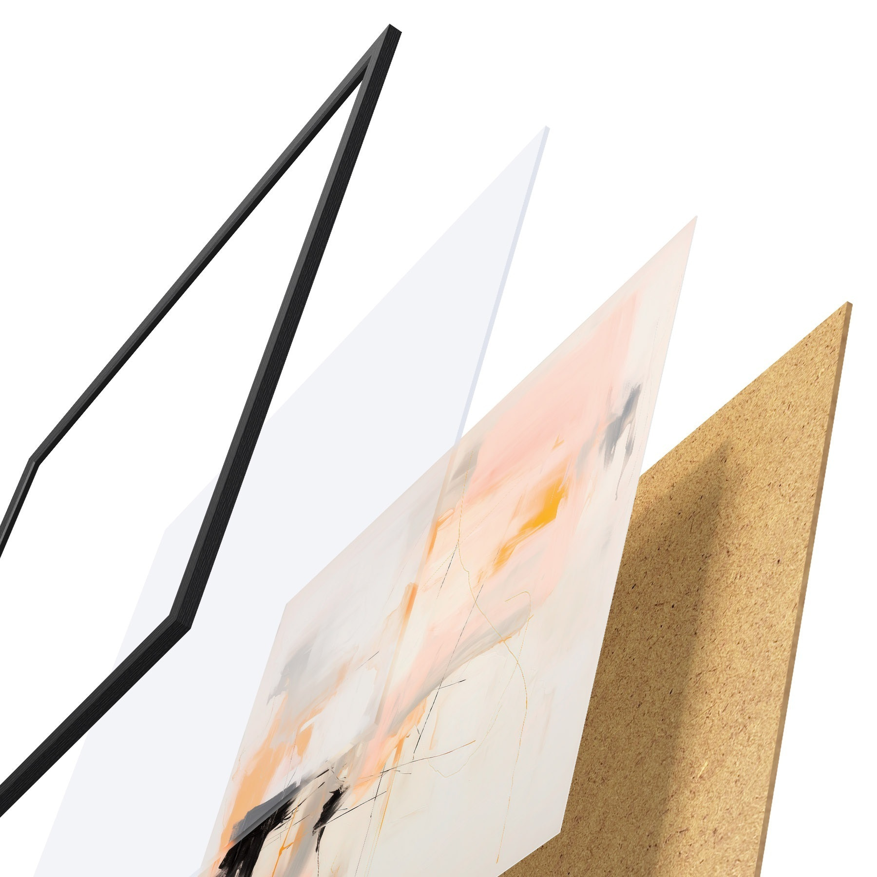 Plakát se skládá z rámu, plexiskla, tištěného obrazu a dřevotřískového podkladu. Díky úchytům na zadní straně lze plakát ihned zavěsit na zeď.