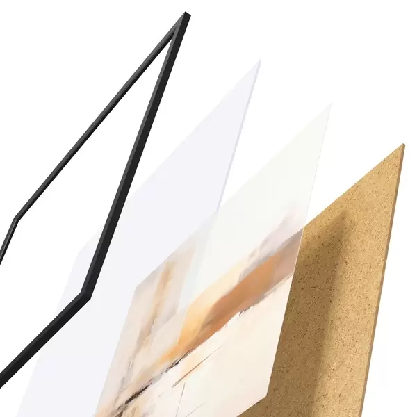 Plakát se skládá z rámu, plexiskla, tištěného obrazu a dřevotřískového podkladu. Díky úchytům na zadní straně lze plakát ihned zavěsit na zeď.