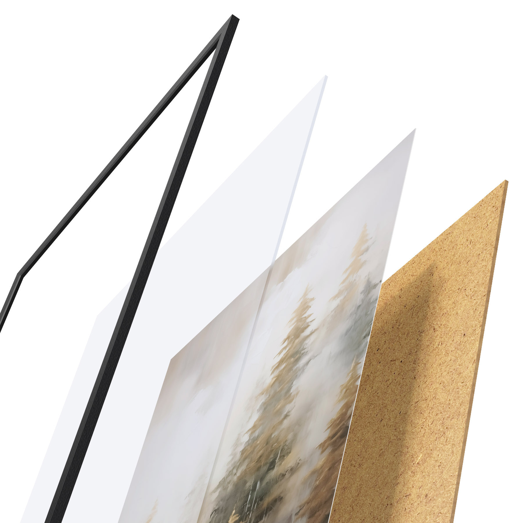 Plakát se skládá z rámu, plexiskla, tištěného obrazu a dřevotřískového podkladu. Díky úchytům na zadní straně lze plakát ihned zavěsit na zeď.